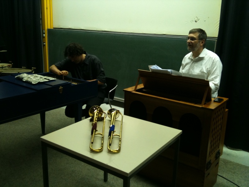 Cembalostimmung (vlnr: Christoph Teichner, Prof. Körndle)